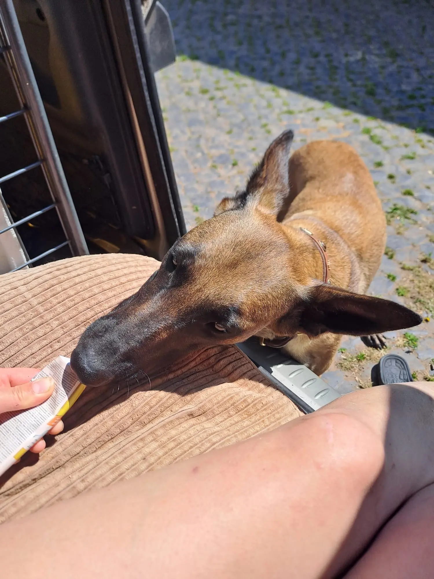 Der Malinois in Josie lässt sich nicht verleugnen: sie ist voller Power und Lebenslust, wenn sie zu Hause, also auf dem eigenen Grundstück, unterwegs ist. Sie hat riesen Spaß an der Suche nach ihrem Spielzeug und ist richtig heiß auf das Zerrspiel damit, welches sie sich als super-Belohnung abholt. Spaziergänge sind nach wie vor großer Stress für sie, eine tolle neue Entwicklung gibt es aber auch da: Josie ist nun unter die Zughunde gegangen. Beim Canicross wird sie richtig mutig und zieht mit mächtig Spaß und Energie! Wird man zu langsam (Mensch muss bei so viel Power vorweg ja auch mal verschnaufen), tendiert sie aber wieder zum Kreiselaufen.