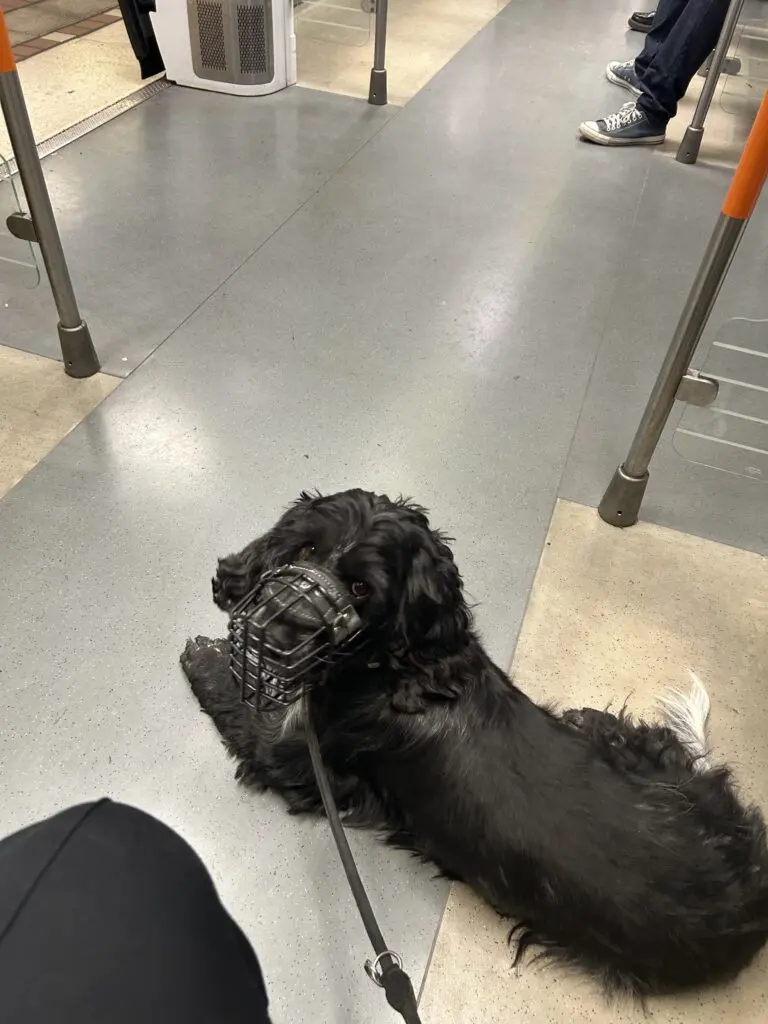 Levi trägt beim Tierarztbesuch, im ÖPNV und bei der Fellpflege einen Maulkorb. Wir wünschen uns Halter, die einen Maulkorb als Hilfsmittel für ein entspanntes Zusammenleben sehen und nicht als Strafe für den Hund.