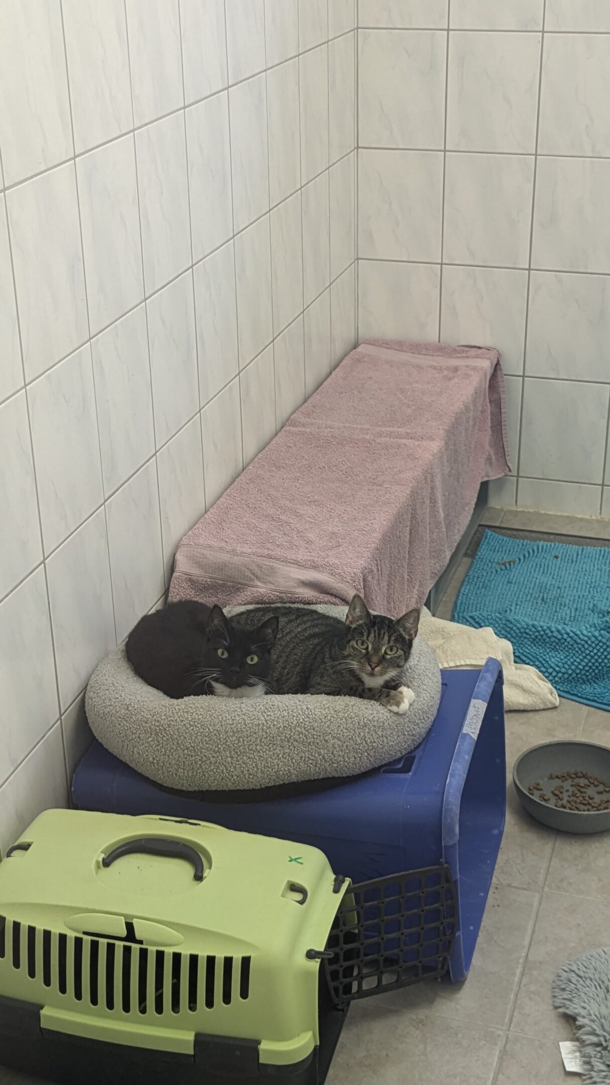 Anfang März bekamen wir 16 Katzen aus schlechter Haltung, darunter die Katzenmädchen Renate, Adelheid, Britta, Magitta, Käthe, Linda und Else. Auch die Kater Wolfgang, Theodor, Jürgen, Edgar, Bruno und Manfred gehörten mit zum gleichen Haushalt. Für die Tiere war die Situation beim Einfangen sehr stressig – entsprechend panisch waren sie zunächst. Inzwischen sind sie bei uns langsam zur Ruhe gekommen, brauchen aber weiterhin Zeit, um Vertrauen zu fassen.