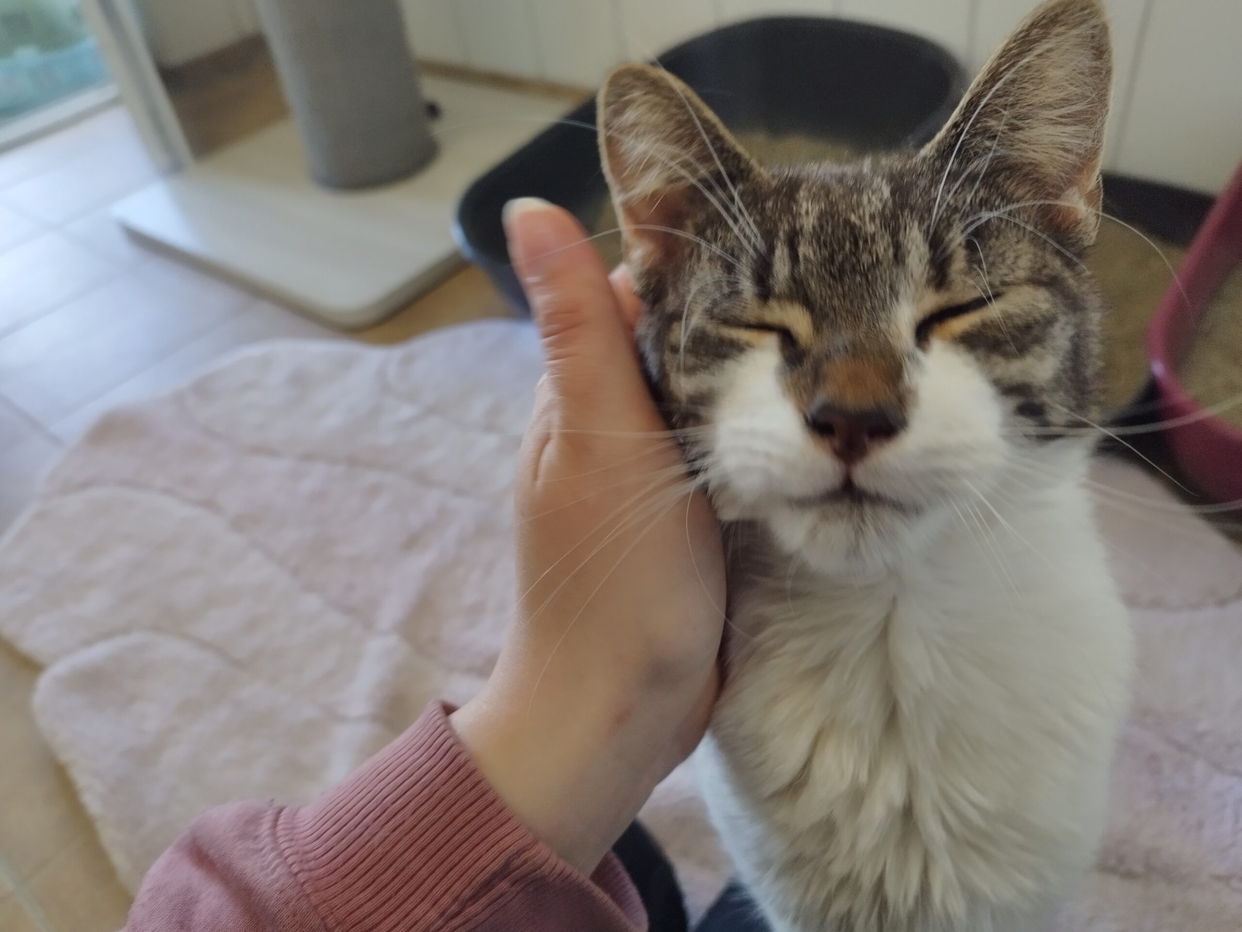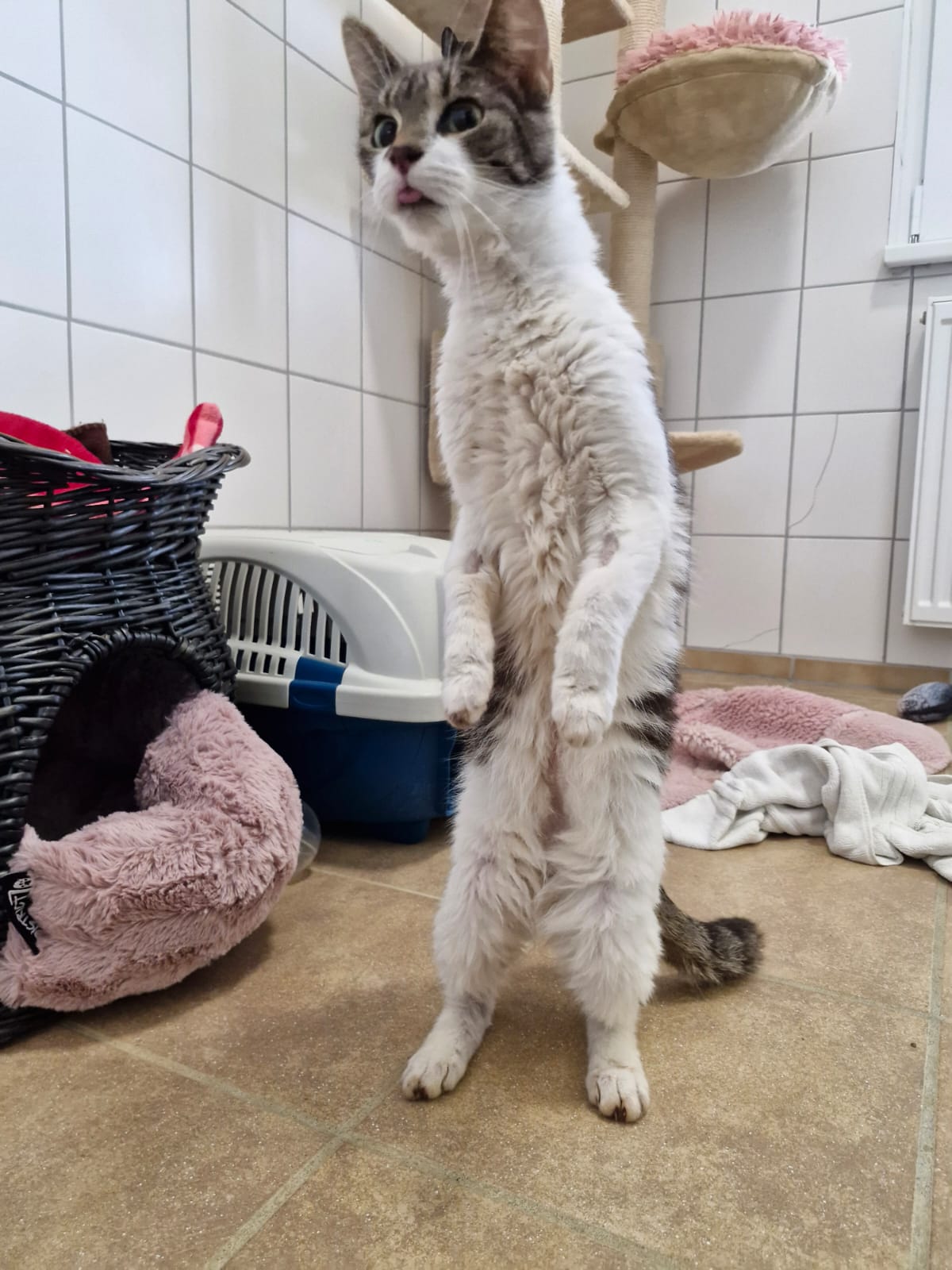 Sie ist eine sehr offene, zutrauliche und menschenbezogene Katze, die aktiv die Nähe sucht und Streicheleinheiten sichtlich genießt. Felia liebt den Kontakt zum Menschen und zeigt dabei eine ruhige, ausgeglichene Art, die sofort berührt.