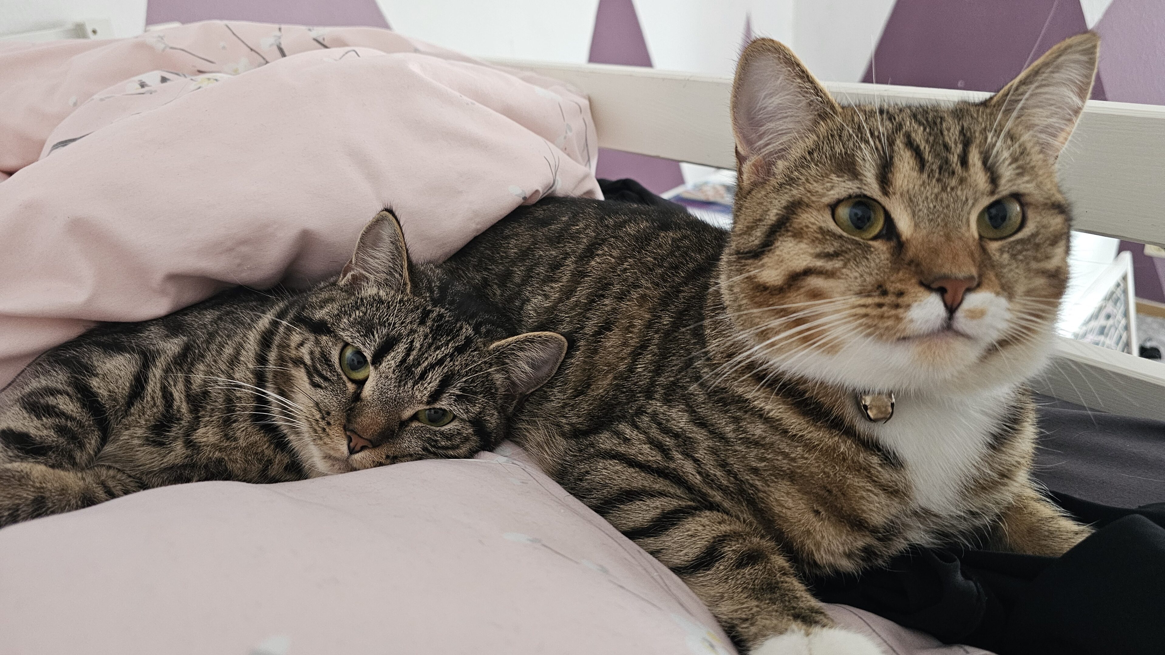 Die beiden sind reine Wohnungskatzen und zuverlässig stubenrein.