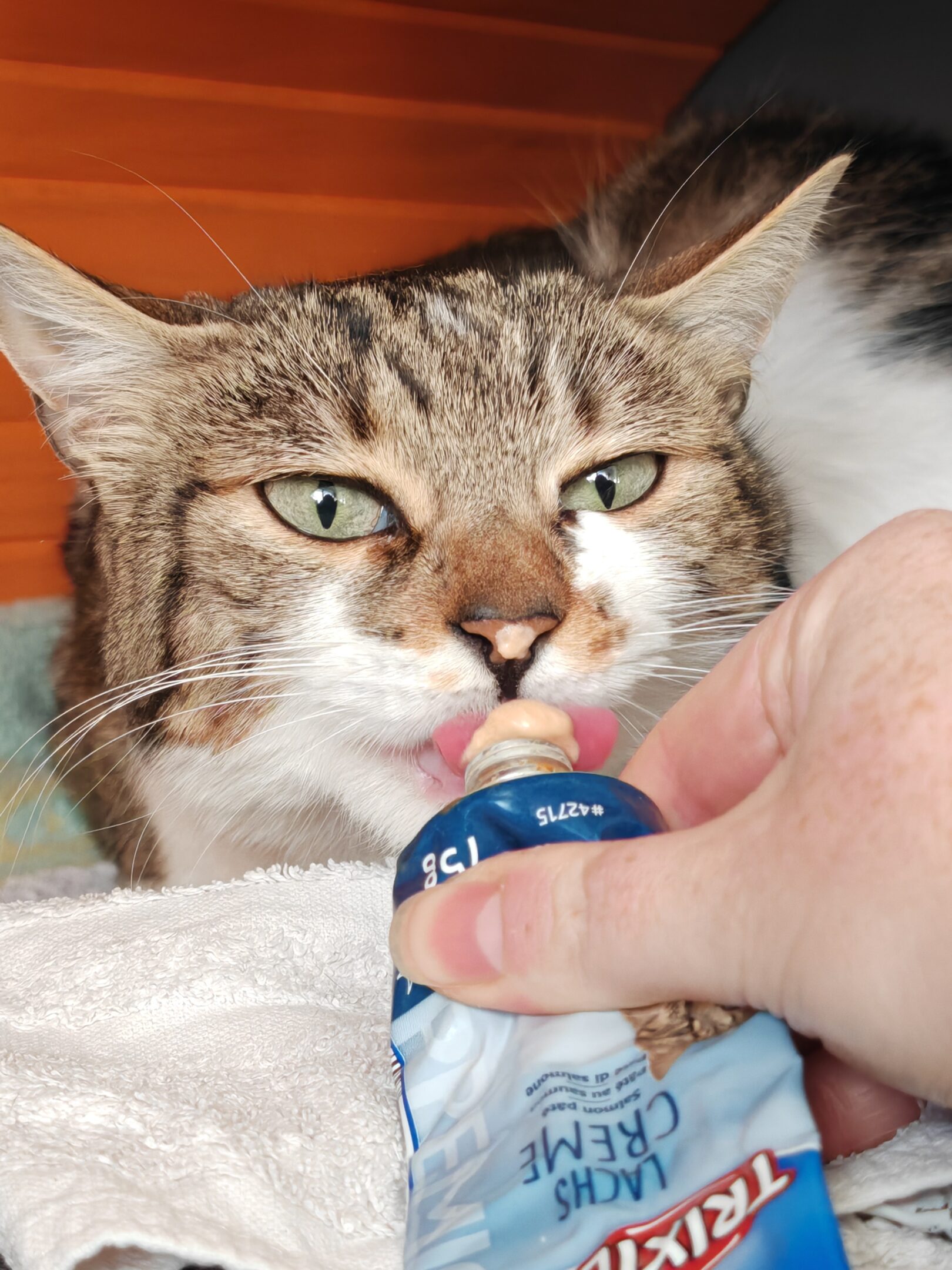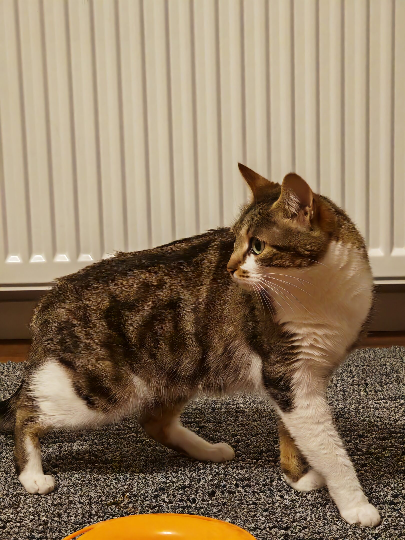 Jara sitzt tagtäglich vor dem Fenster und schaut stundenlang raus. In der Wohnung spielt sie nicht, egal was man ihr anbietet. Daher ist es naheliegend, dass sie einem (gesicherten) Freigang im ländlichen Gebiet sehr zugetan wäre. Futter und Leckerlies sind im Zusammenleben zwischen Jara und Menschen wortwörtlich überlebenswichtig, da sie dadurch Nähe zulässt. Sie frisst aus der Hand, was die einzige Möglichkeit war, in den ersten Tagen auf Pflegestelle, um sie zur Nahrungsaufnahme zu bewegen. Inzwischen darf man direkt neben ihr sitzen und in Richtung Napf greifen, während sie frisst. Das ist undenkbar, wenn kein Futter im Spiel ist. Aber auch hier: Nur gucken, nicht Jara anfassen.