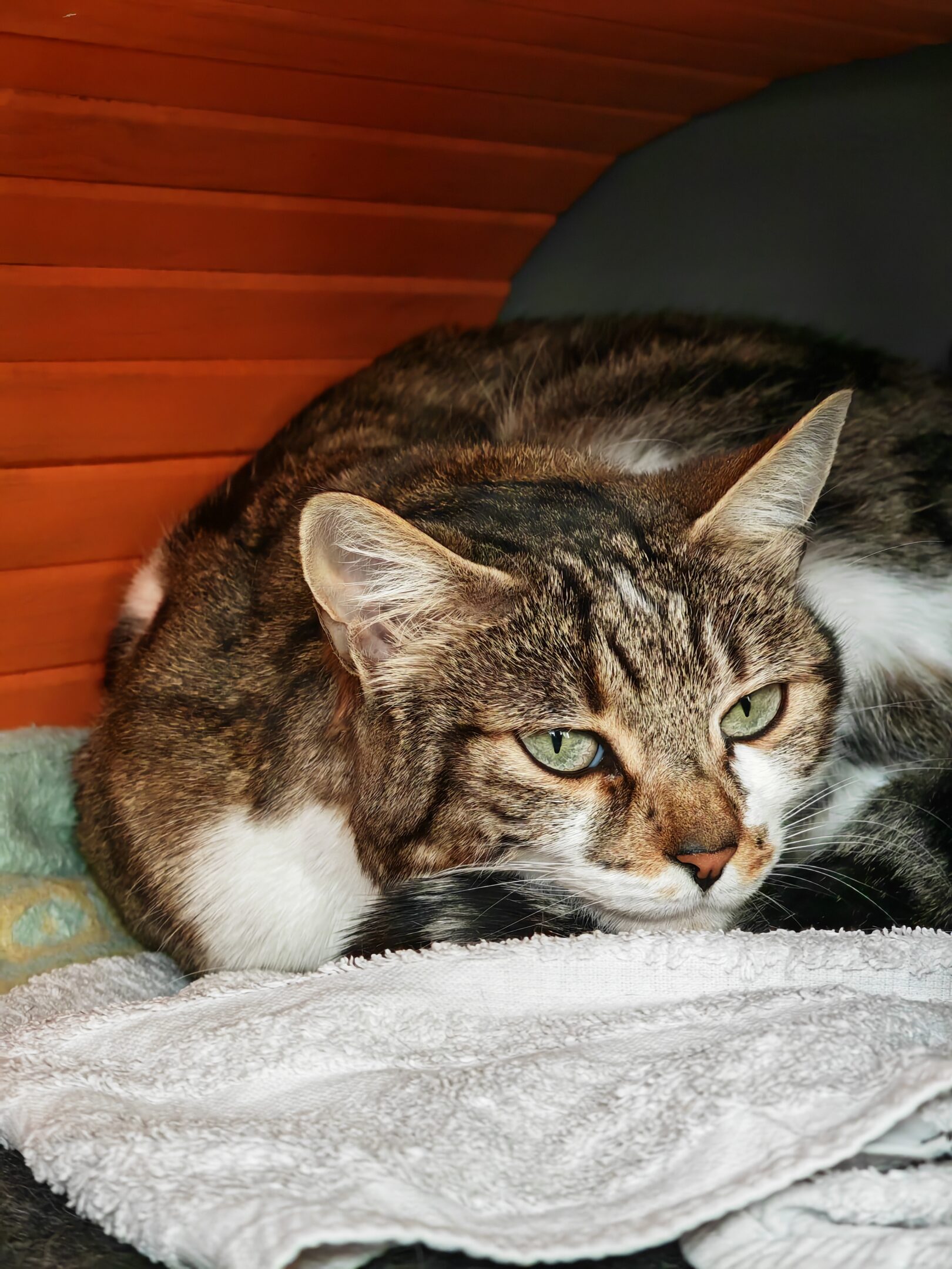 Sie lässt die Attacken der hausinternen Rüpelkatze der Pflegestelle locker an sich abprallen. Den anderen beiden, deutlich sozialsicheren Mädels ist sie sehr zugetan. Jara braucht Liebe und Sicherheit durch einen Gleichgesinnten (und Gleichaltrigen). Und gaaaaaanz viele Verstecke mit Tüchern über dem Eingang.