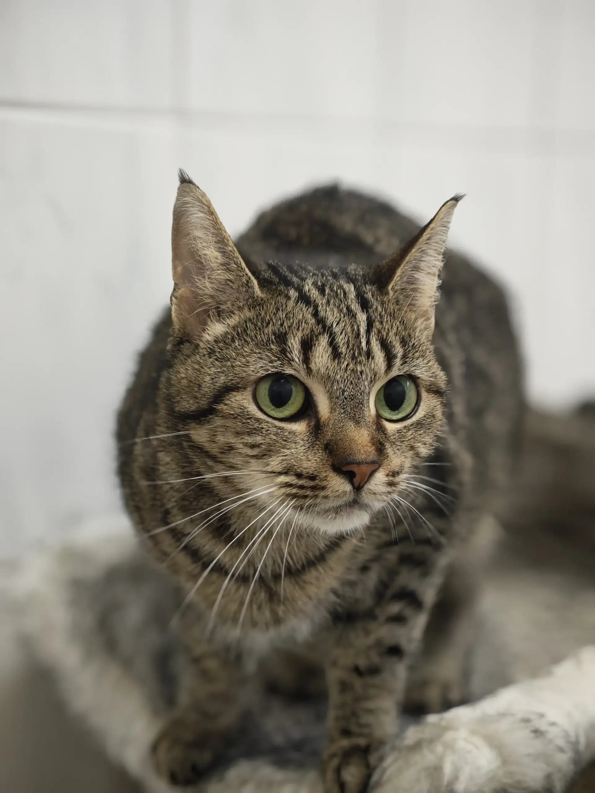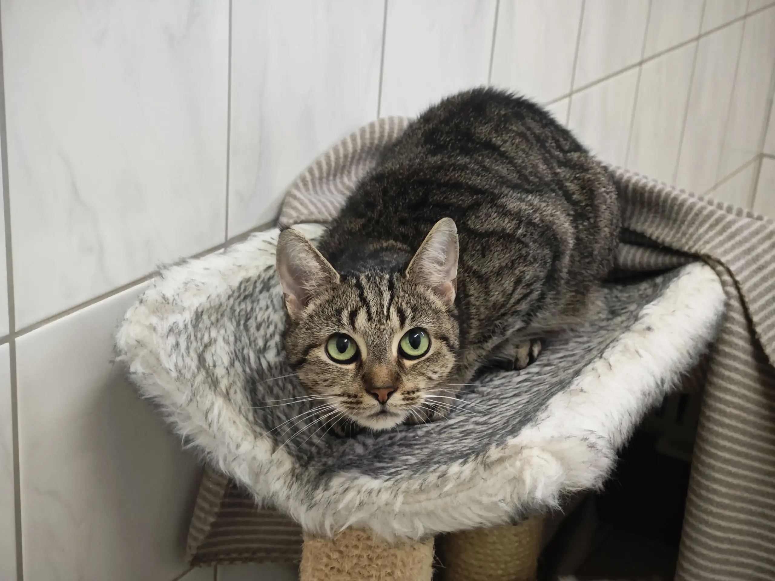 Minka ist eine etwas schüchterne Katzendame, die noch lernen muss, Vertrauen zu fassen. Fremden gegenüber ist sie zurückhaltend, doch wer ihr Herz gewinnt, darf sich über sanfte Momente und leise Schnurrer freuen. Während ihres Aufenthalts in Quarantäne hat sie bereits gezeigt, dass sie Streicheleinheiten genießen kann – sie traut sich nur noch nicht, von sich aus den ersten Schritt zu machen.