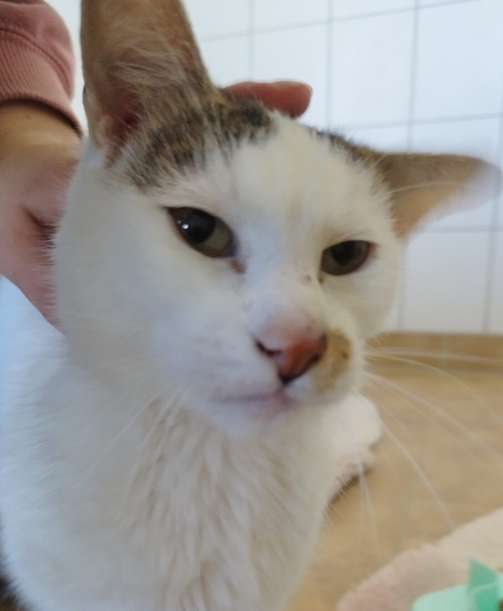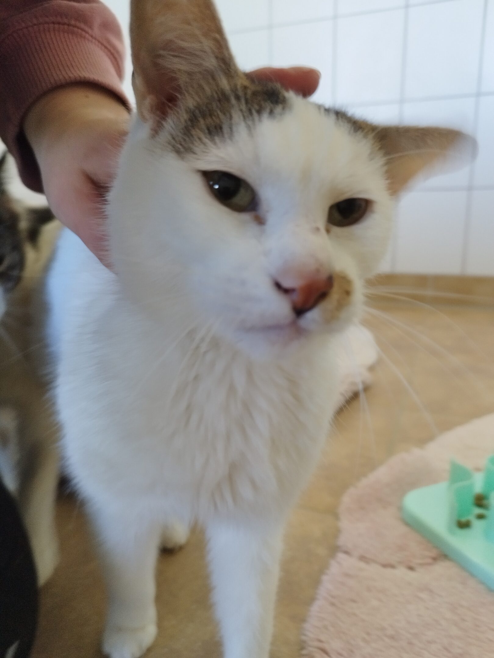 Der hübsche Kater zeigt sich bei uns als zutraulicher und aufgeschlossener Kerl. Menschen gegenüber ist er sehr zugewandt, sucht aktiv die Nähe und genießt jede Form von Aufmerksamkeit.