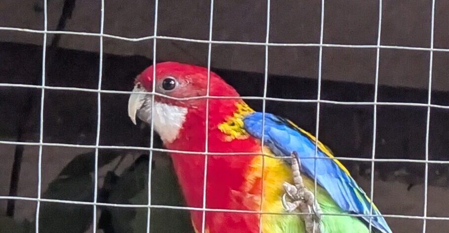 Prachtrosella, leuchtend kräftige Farben, vermutlich Männchen. Dieser Sittich wurde, genau wie alle anderen drei Sittiche, von einem Züchter Nahe Heilbad Heiligenstadt erworben.