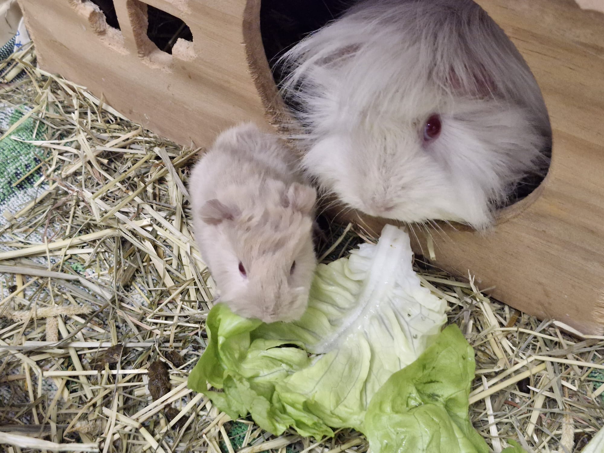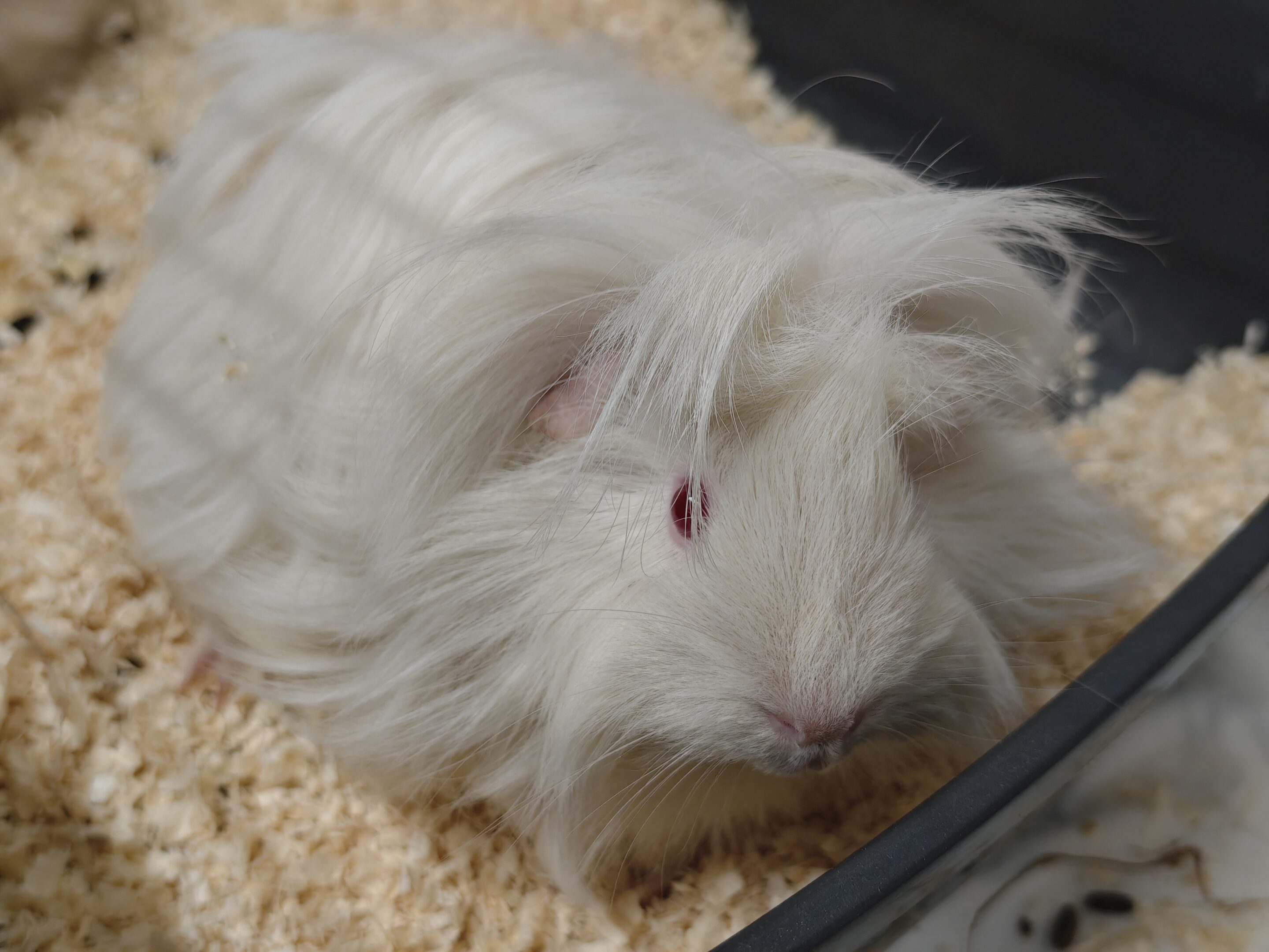 Tweety kam als einziges weibliches Meerschweinchen zu uns und lebt daher derzeit separat von den anderen Tieren. Gesellschaft hat sie dennoch – ihre drei Babys, mit denen sie aktuell zusammen sitzt.