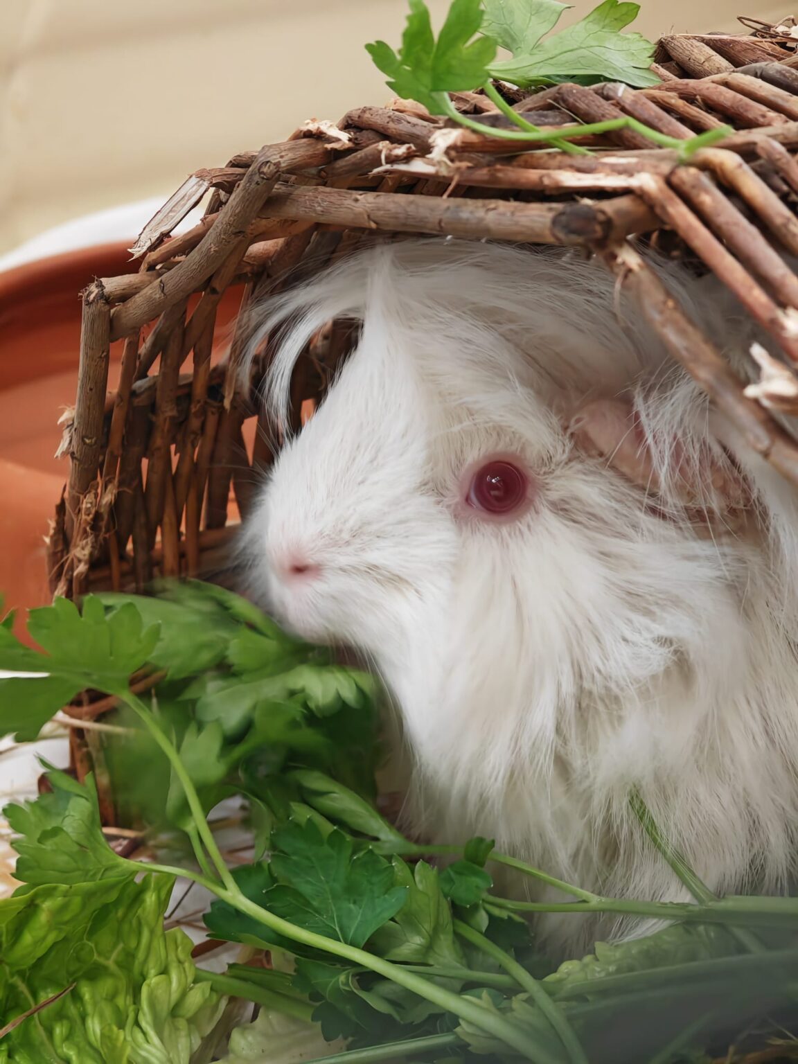 Tweety zeigt sich als offenes und neugieriges Meerschweinchen. Schon morgens begrüßt sie uns aufmerksam am Gitter. In lauten und ungewohnten Situationen zieht sie sich kurz in ihr Häuschen zurück, kommt aber meist schnell wieder hervor, sobald sie sich sicher fühlt.