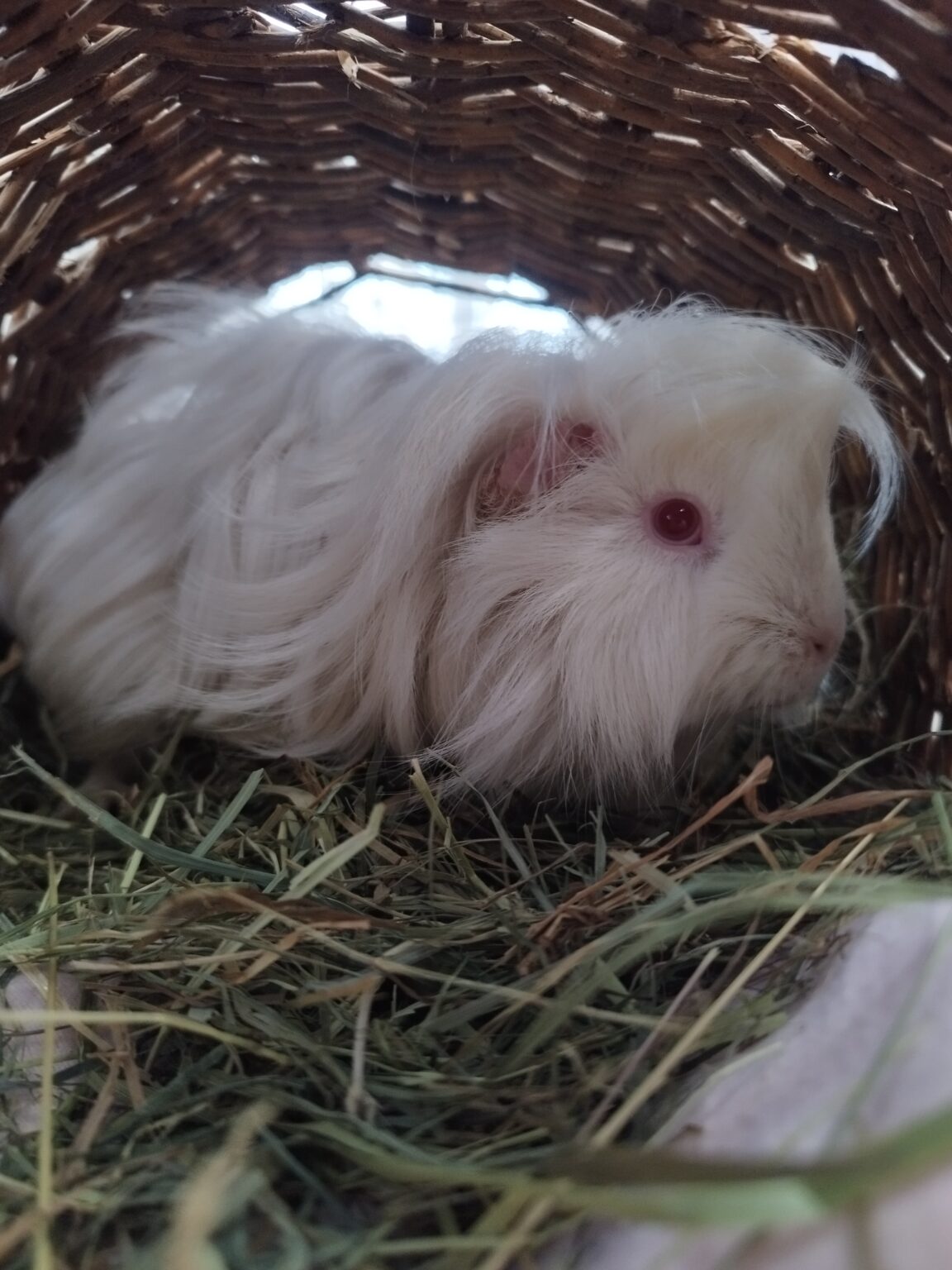 Tweety zeigt sich als offenes und neugieriges Meerschweinchen. Schon morgens begrüßt sie uns aufmerksam am Gitter. In lauten und ungewohnten Situationen zieht sie sich kurz in ihr Häuschen zurück, kommt aber meist schnell wieder hervor, sobald sie sich sicher fühlt.
