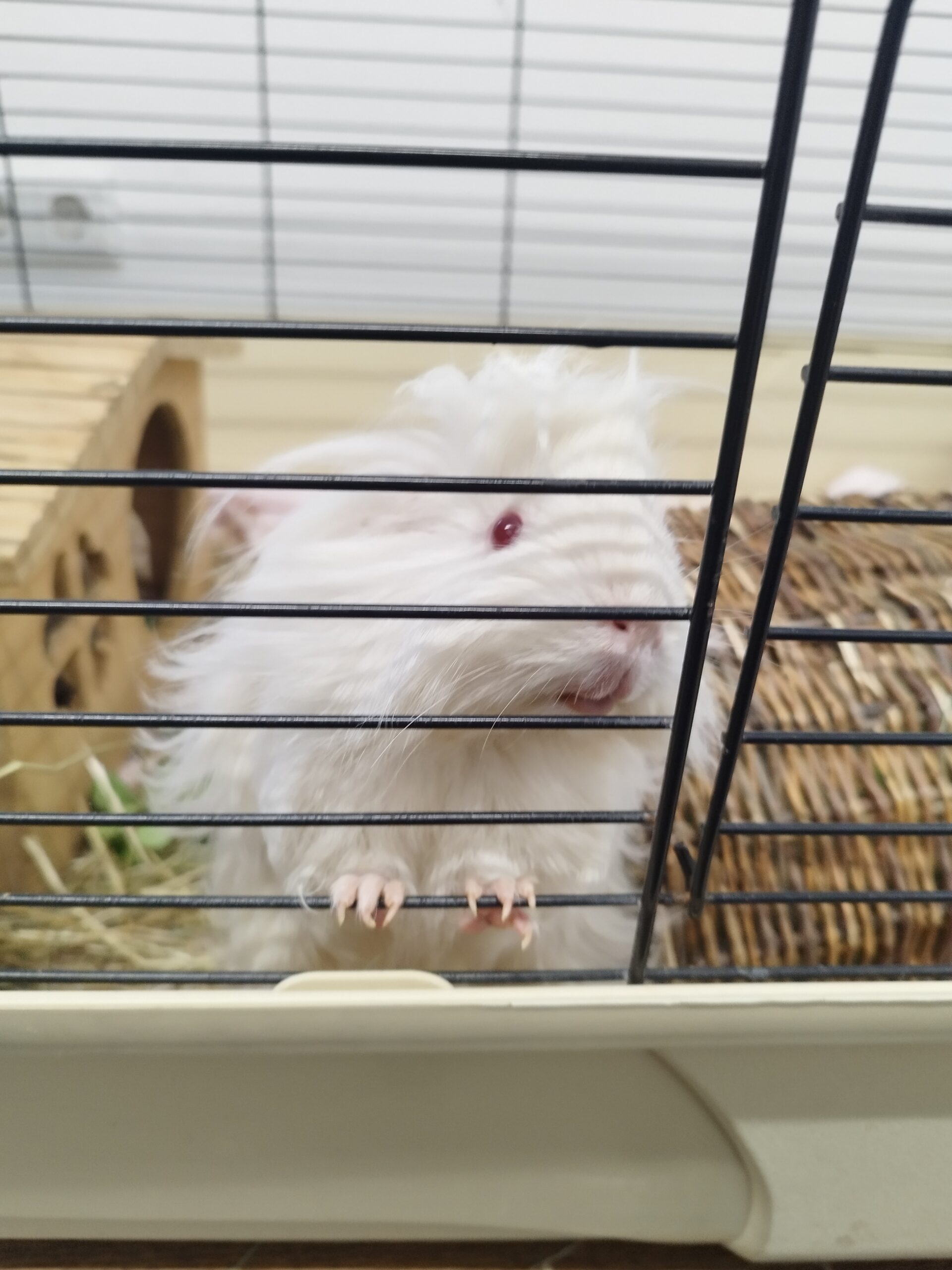 Tweety kam als einziges weibliches Meerschweinchen zu uns und lebt daher derzeit separat von den anderen Tieren. Gesellschaft hat sie dennoch – ihre drei Babys, mit denen sie aktuell zusammen sitzt.