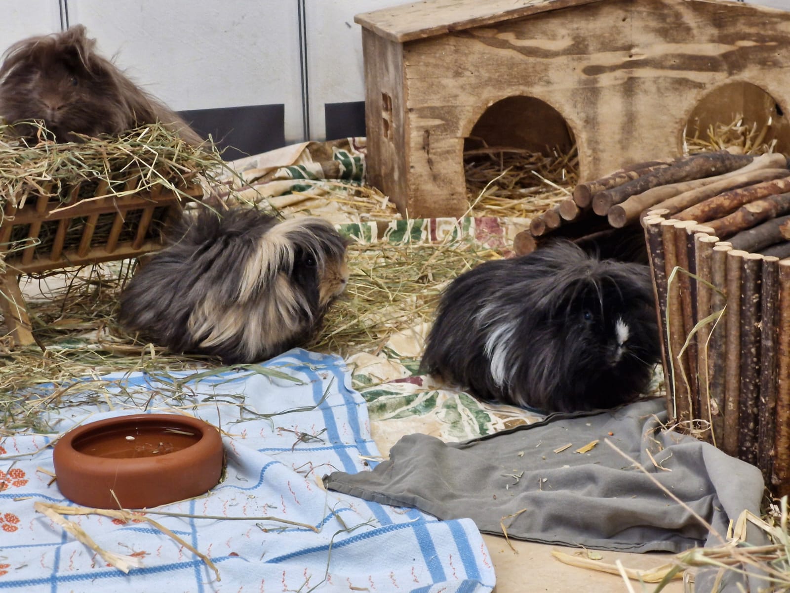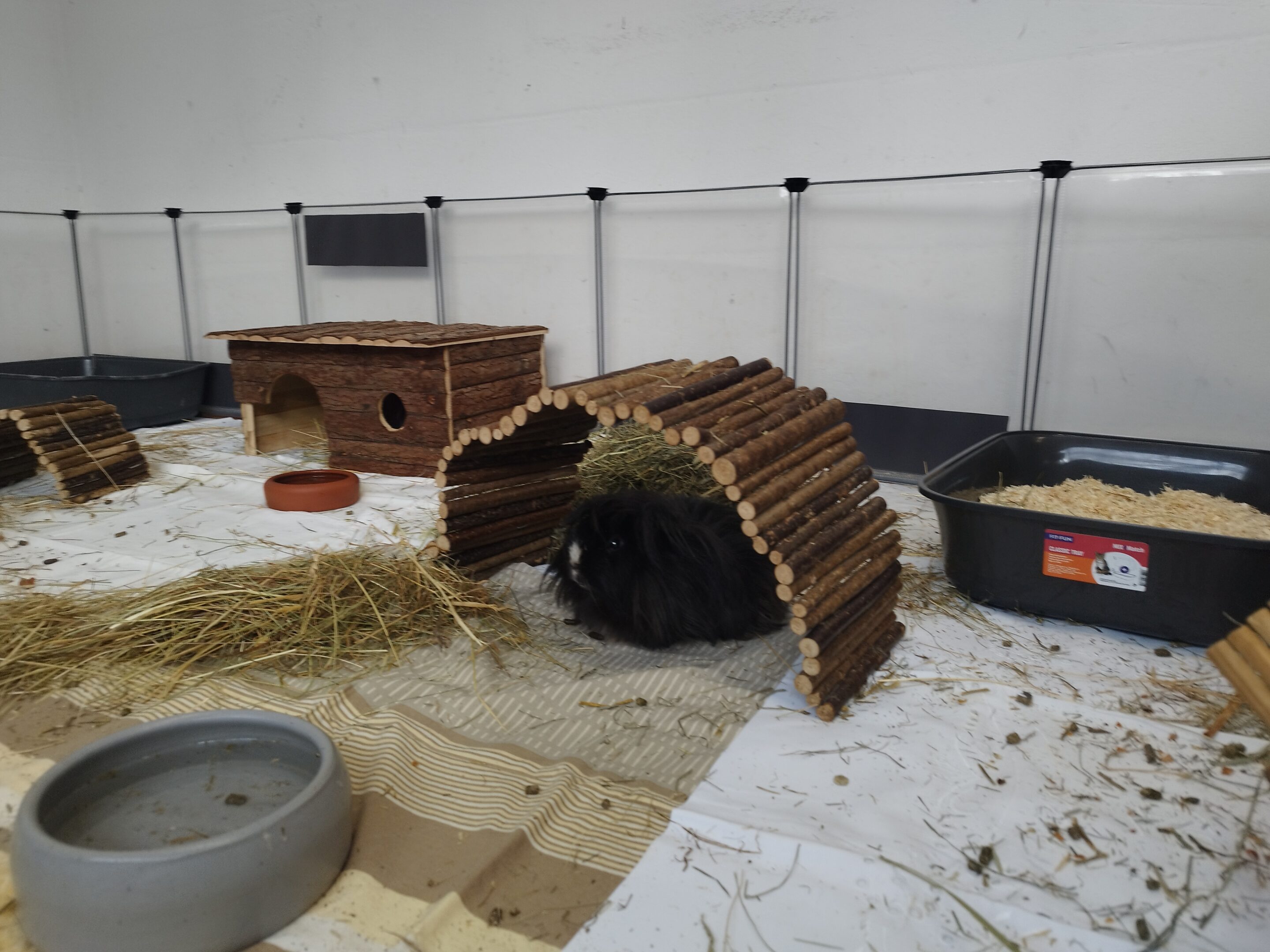 Unsere 11 Meerschweinchen – Böckchen leben derzeit gemeinsam in einer Gruppe und sind den Kontakt zu Artgenossen gewohnt. Typisch meerschweinchenhaft zeigen sie sich noch recht scheu und ziehen sich bei ungewohnten Situationen gern in ihre Verstecke zurück. Mit Ruhe, Geduld und liebevoller Zuwendung fassen sie jedoch nach und nach Vertrauen.